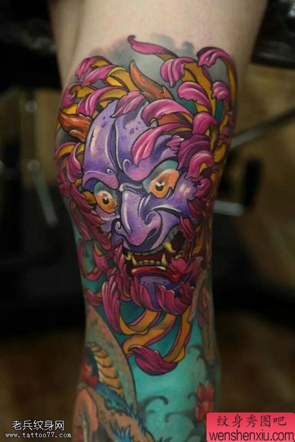 纹身图吧分享一张腿部般若文身作品