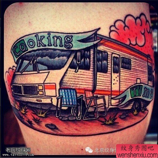 纹身图吧分享一张腿部汽车文身作品