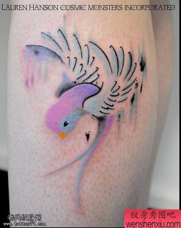 纹身图吧分享一张手臂彩色蜂鸟文身作品