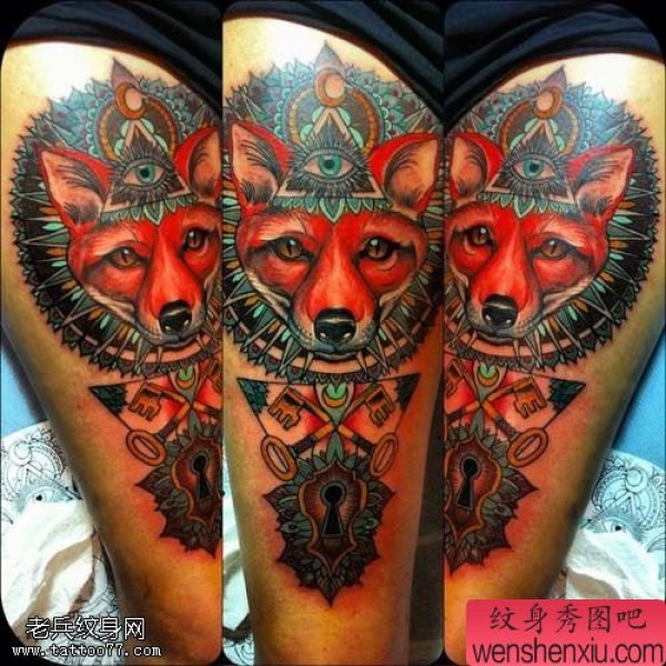 手臂彩色狐狸文身作品由纹身图吧分享