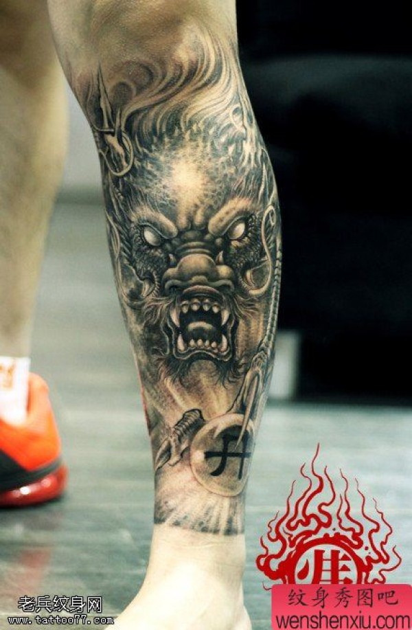 花腿纹身--一组大黑腿纹身图案作品欣赏
