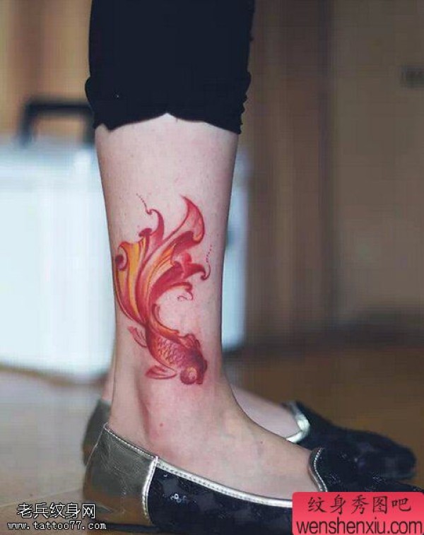 腿部水彩小金鱼文身作品由纹身图吧分享