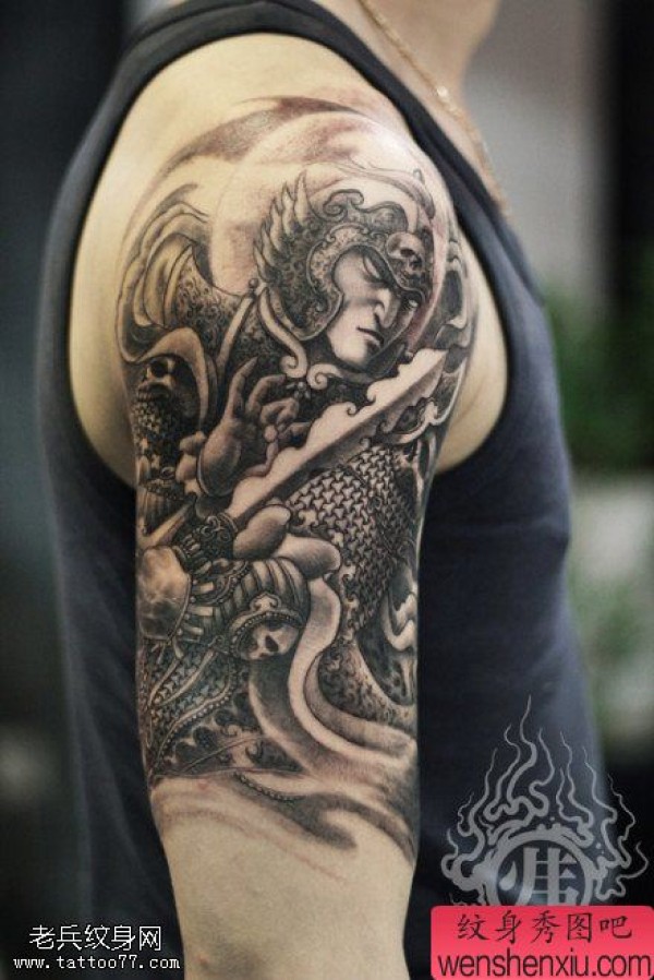 一张手臂黑灰韦陀文身作品由纹身图吧分享
