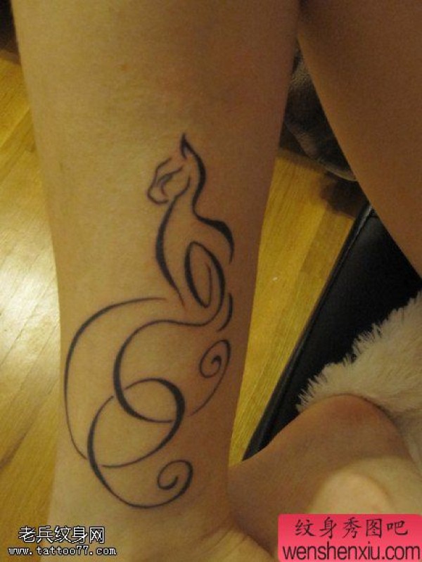 腿部猫咪文身作品由纹身图吧分享