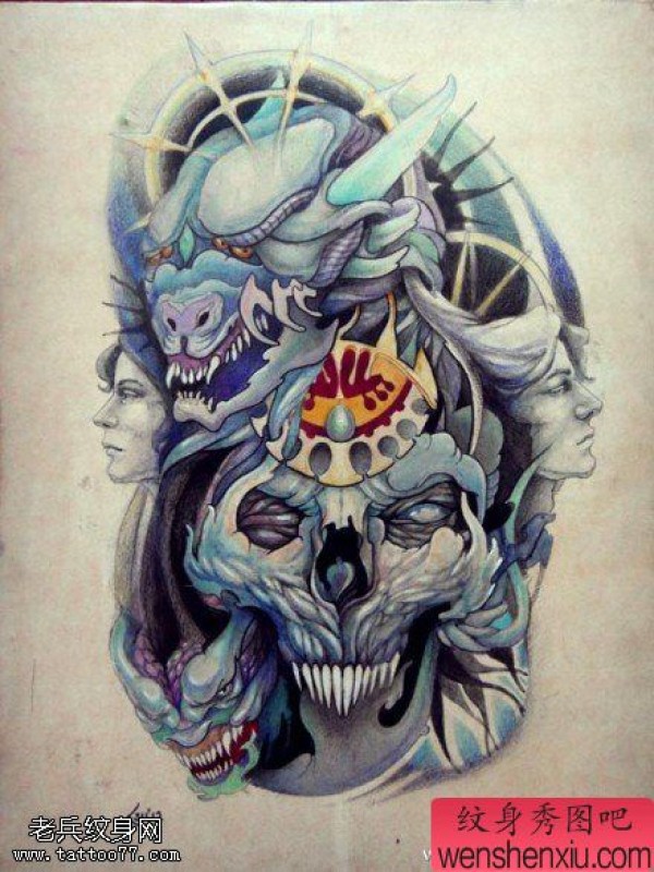 能面万媚纹身手稿_52张日式能剧面具纹身手稿图案素材欣赏