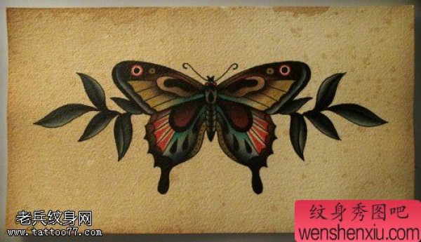 一张蝴蝶文身手稿作品由纹身图吧分享