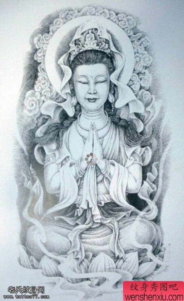 纹身图吧分享一张适合纹满背的观音文身手稿作品