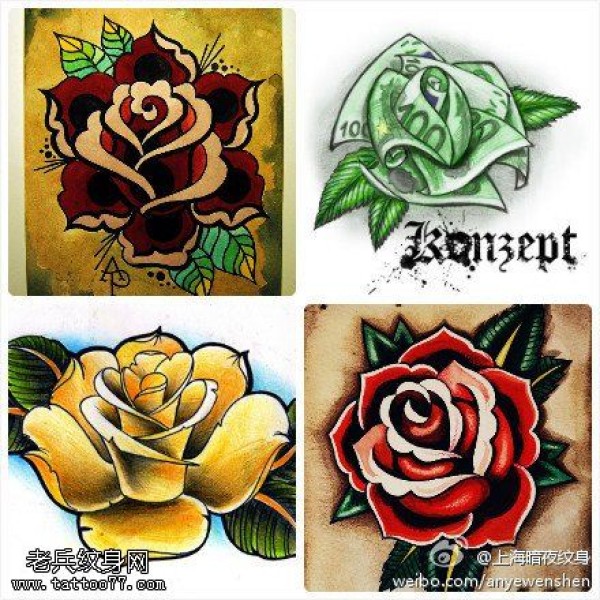 纹身图吧分享一张彩色玫瑰花文身手稿作品
