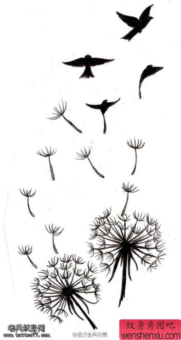 纹身图吧分享一张蒲公英文身手稿作品