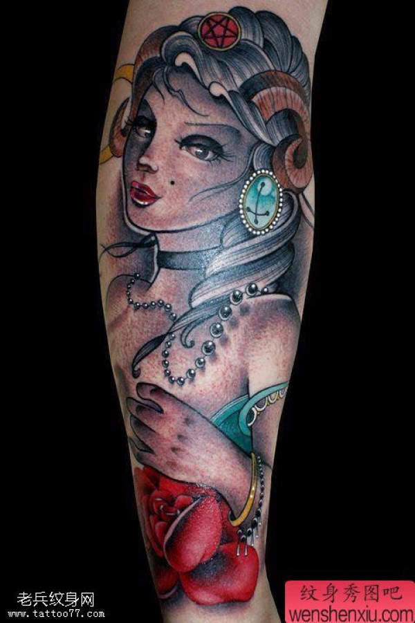 纹身图吧分享一张手臂女郎文身作品