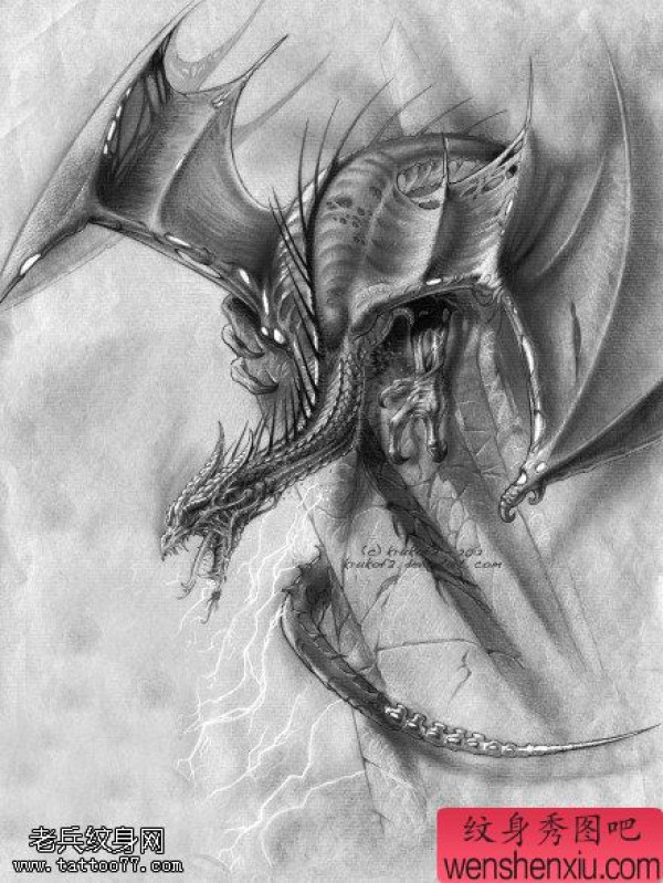 龙纹身手稿_一组老传统黑灰龙手稿纹身图案