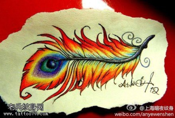 彩色孔雀羽毛文身手稿图片
