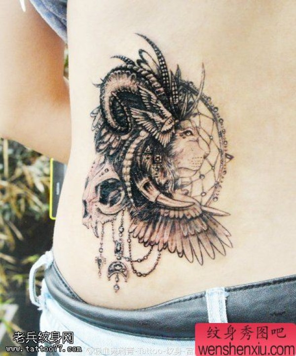 腰部羚羊狮子捕梦网文身图片由文身分享
