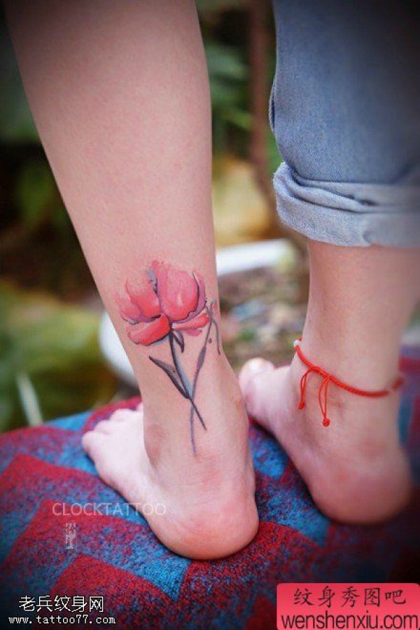 女性脚踝罂粟花文身图片