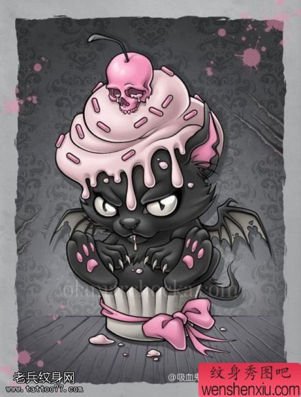 彩色小恶魔蛋糕蝴蝶结文身图片