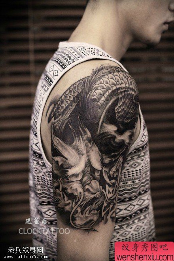 手臂霸气黑白霸气龙文身图片