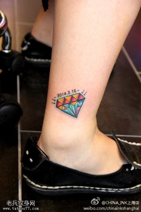 纹身图吧分享一张脚踝彩色钻石文身图片