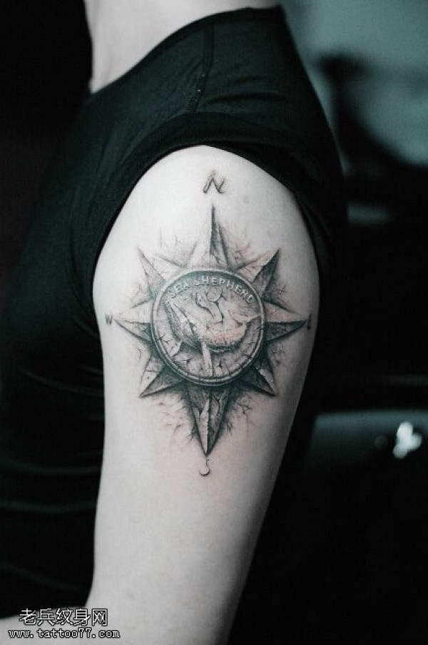 手臂指南针图腾太阳文身作品由文身分享