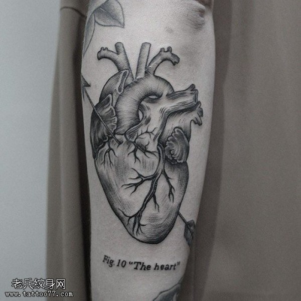 纹身图吧分享一张腿部心脏文身图片