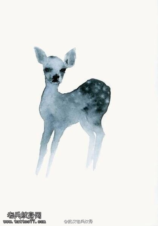 纹身图吧分享一套水墨鹿文身图片