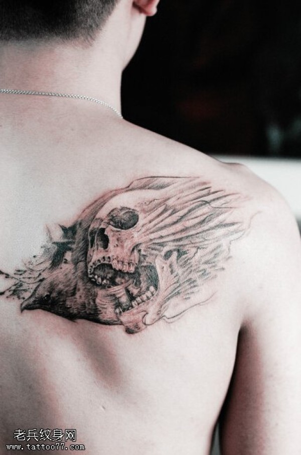 背部霸气骷髅头文身图片