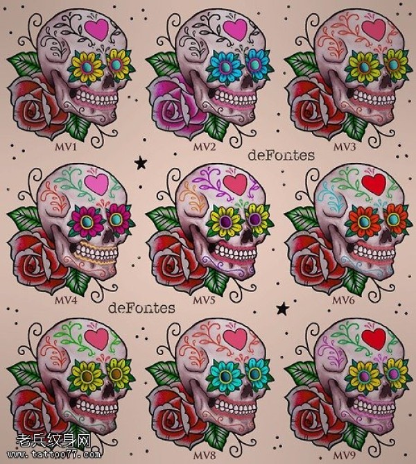 彩色骷髅玫瑰花文身图片由纹身图吧分享
