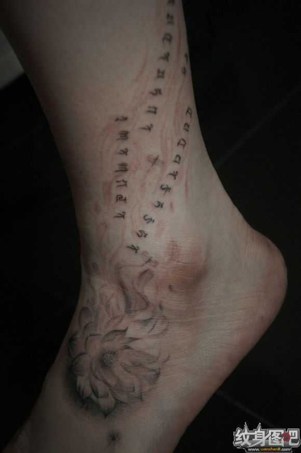 脚背上一朵淡雅的莲花和一段经文