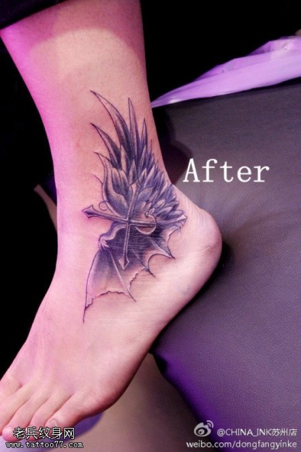 脚部天使恶魔翅膀文身作品