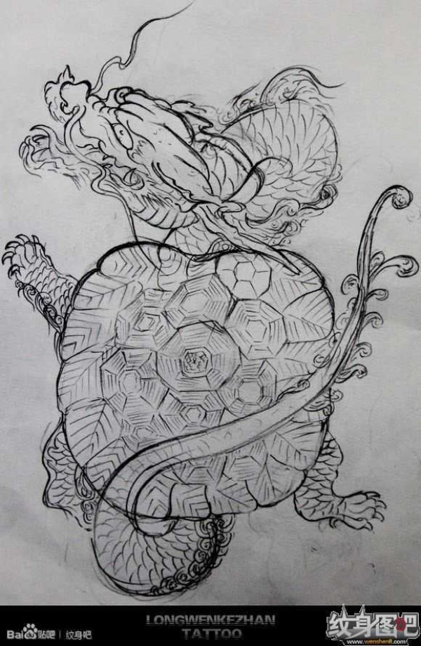 龙纹身手稿_一组老传统黑灰龙手稿纹身图案