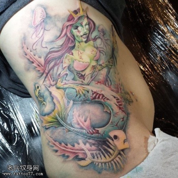 侧腰彩色美人鱼文身图片由纹身图吧分享