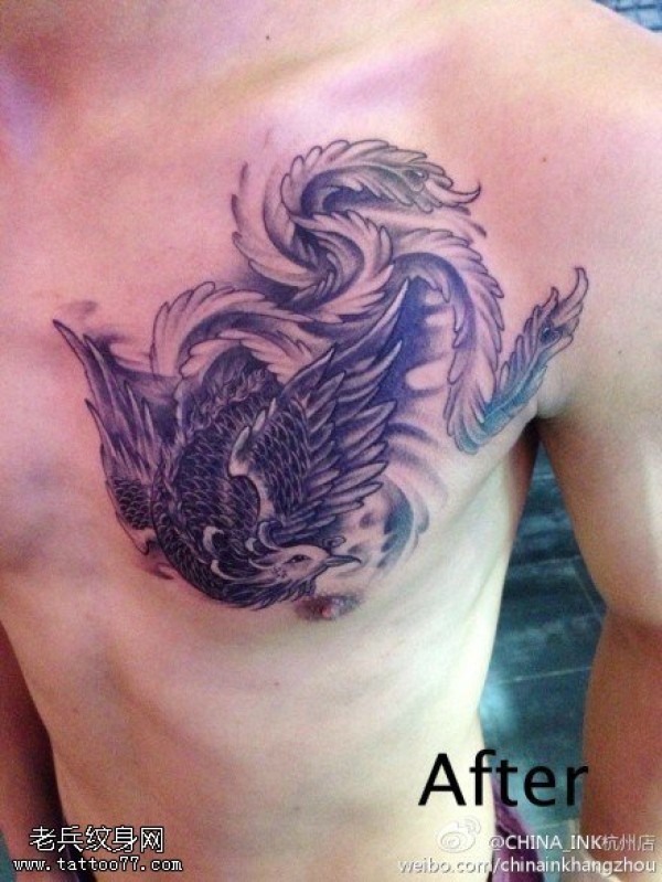 纹身图吧分享一张胸口凤凰文身作品