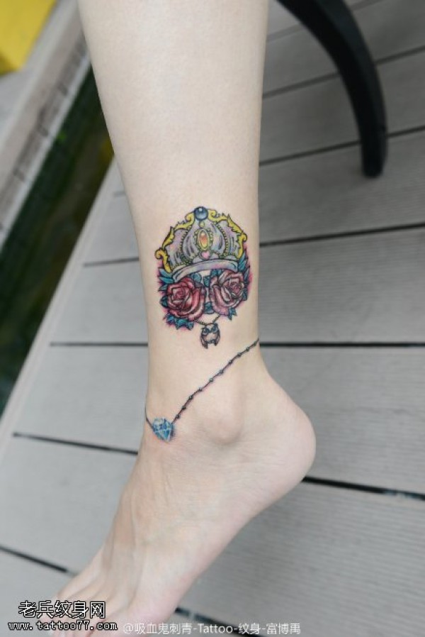 脚踝骷髅皇冠文身作品由文身馆分享
