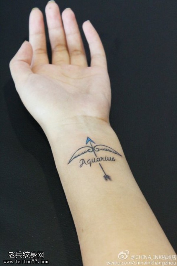 手腕翅膀箭头字母文身作品由纹身图吧分享