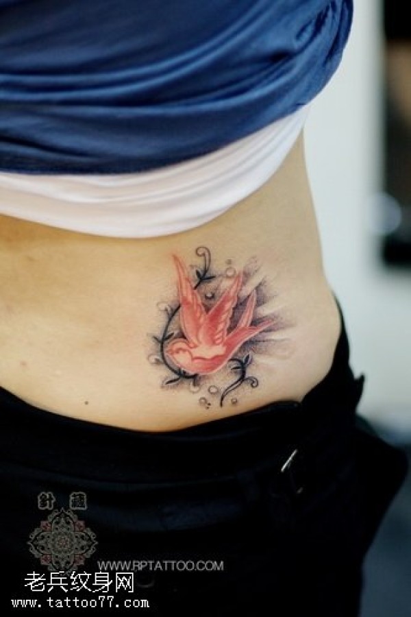 分享一款腰部时尚性感的蝶恋花纹身图案_腰部纹身图案大全_纹身图吧