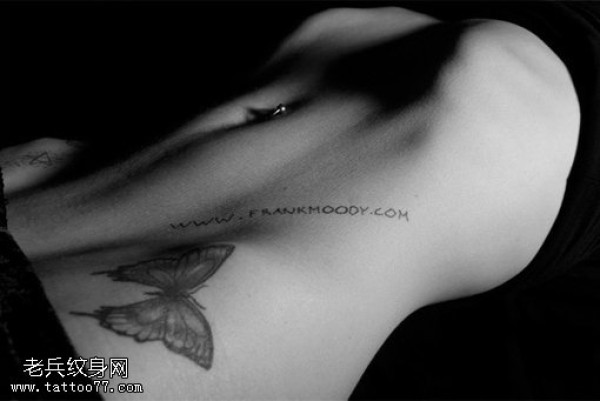 分享一款腰部时尚性感的蝶恋花纹身图案_腰部纹身图案大全_纹身图吧