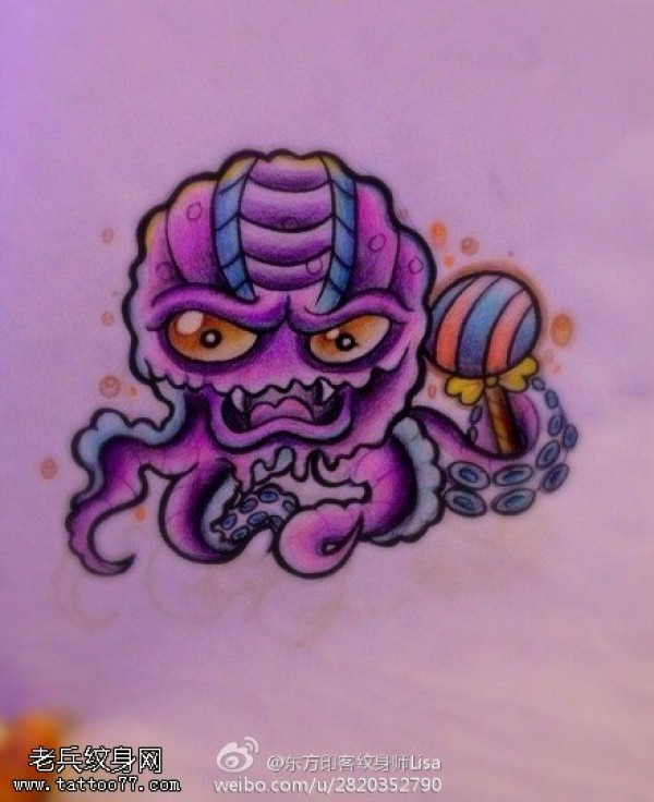 纹身图吧分享一张彩色章鱼文身手稿作品