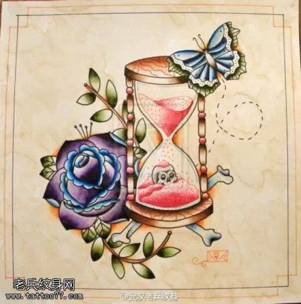 一套彩色沙漏文身手稿作品由纹身图吧分享