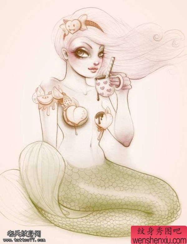 纹身图吧分享一张卡通美人鱼文身手稿作品