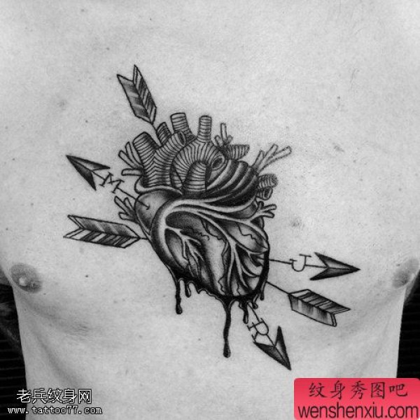 创意胸口心脏文身作品由纹身图吧分享