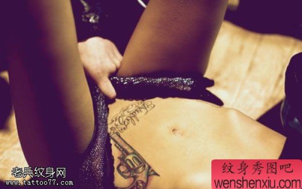 小清新腹部手枪文身作品
