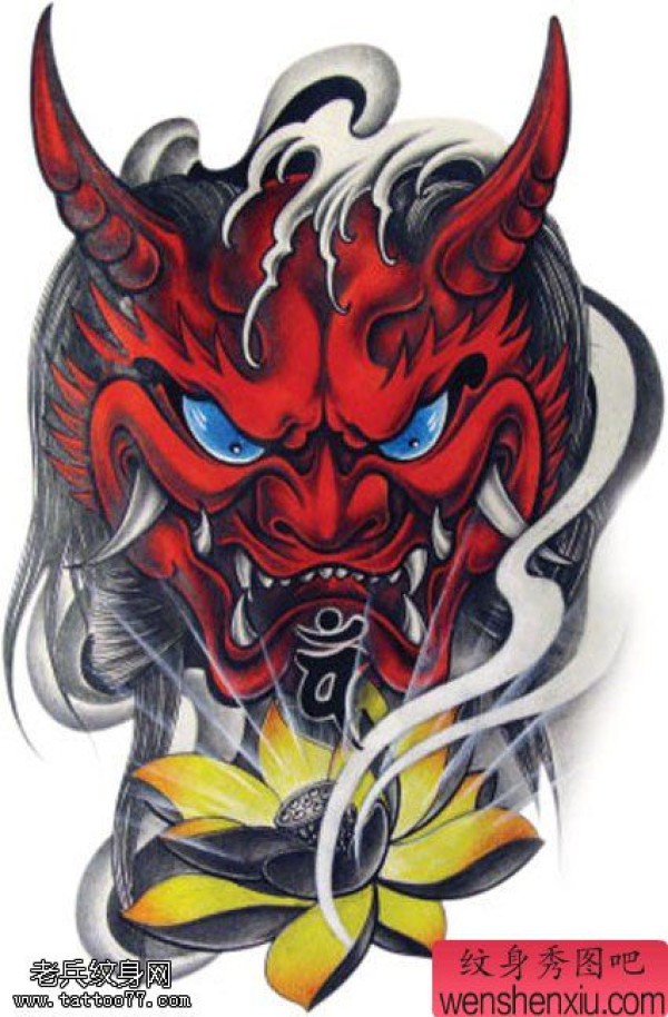 能面万媚纹身手稿_52张日式能剧面具纹身手稿图案素材欣赏