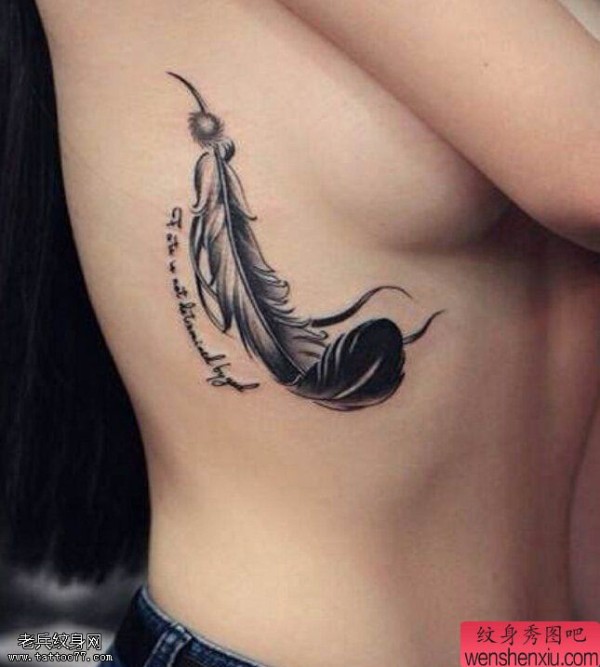 女性胸部羽毛文身作品由最好的纹身图吧分享