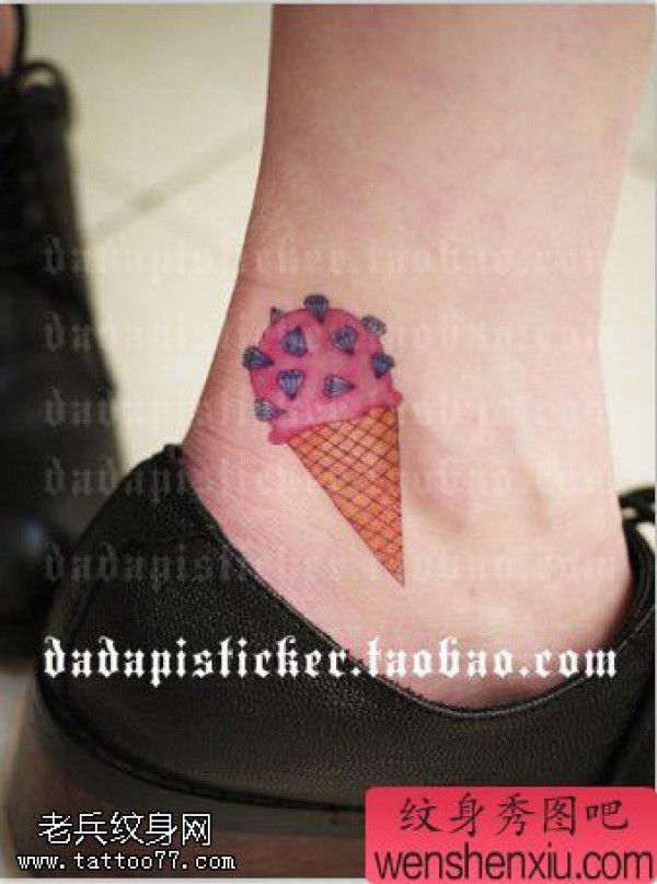 脚踝卡通冰淇淋文身作品由纹身图吧分享