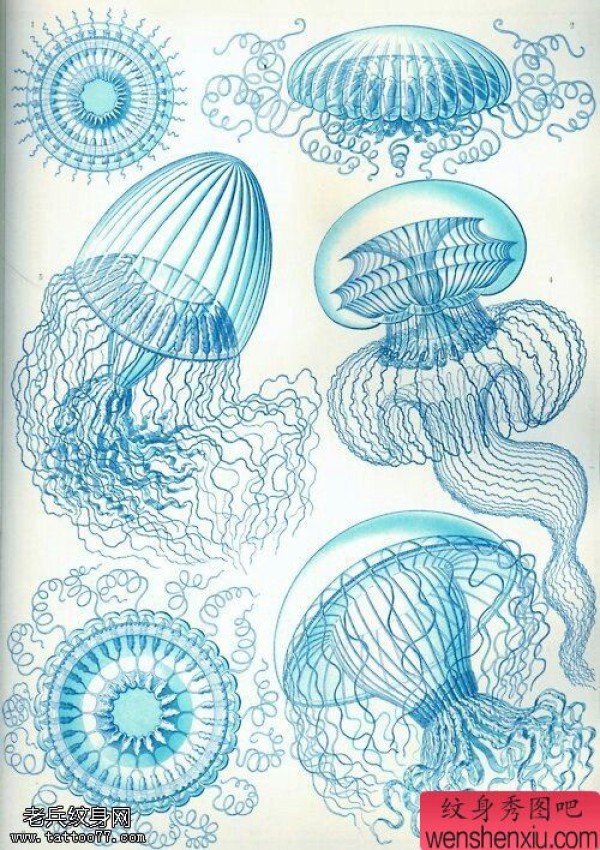 纹身图吧分享一张水母文身手稿作品