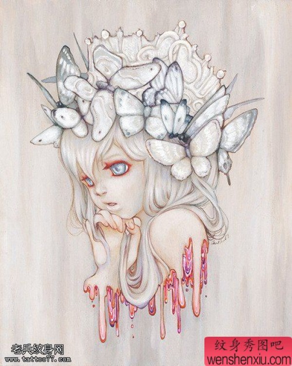 女郎蝴蝶文身手稿作品由纹身图吧分享