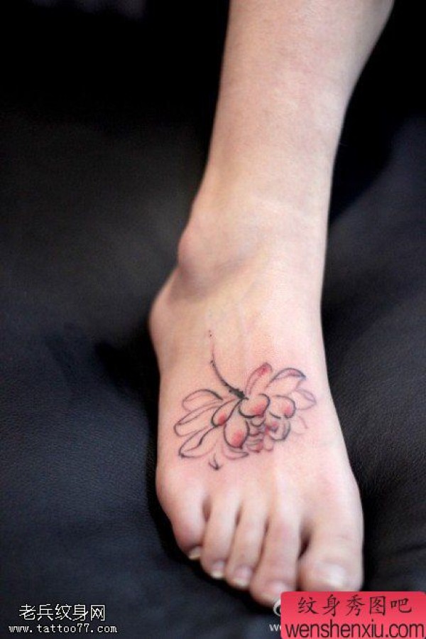 纹身图吧分享一张女性脚背水墨莲花文身作品