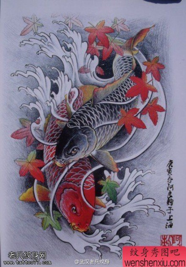一套传统刺青鲤鱼文身作品由文身馆分享