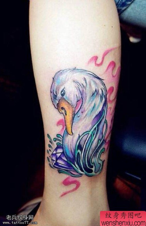 纹身图吧分享一张脚踝彩色鹅钻石文身作品