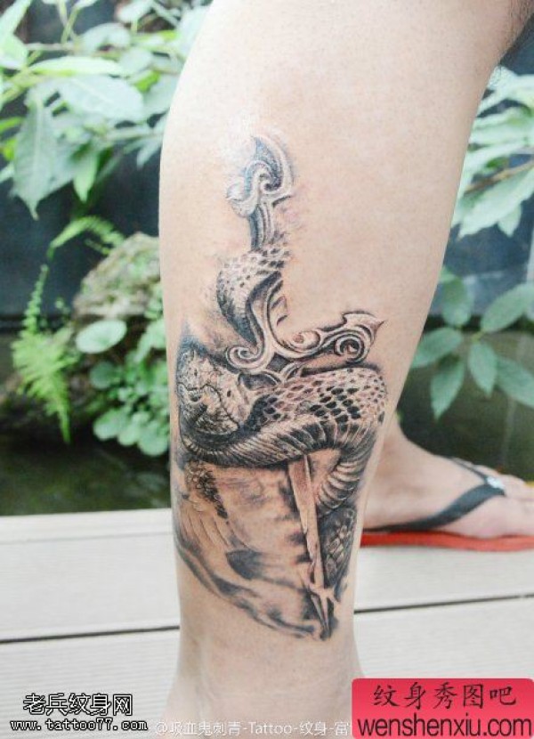 花腿纹身--一组大黑腿纹身图案作品欣赏