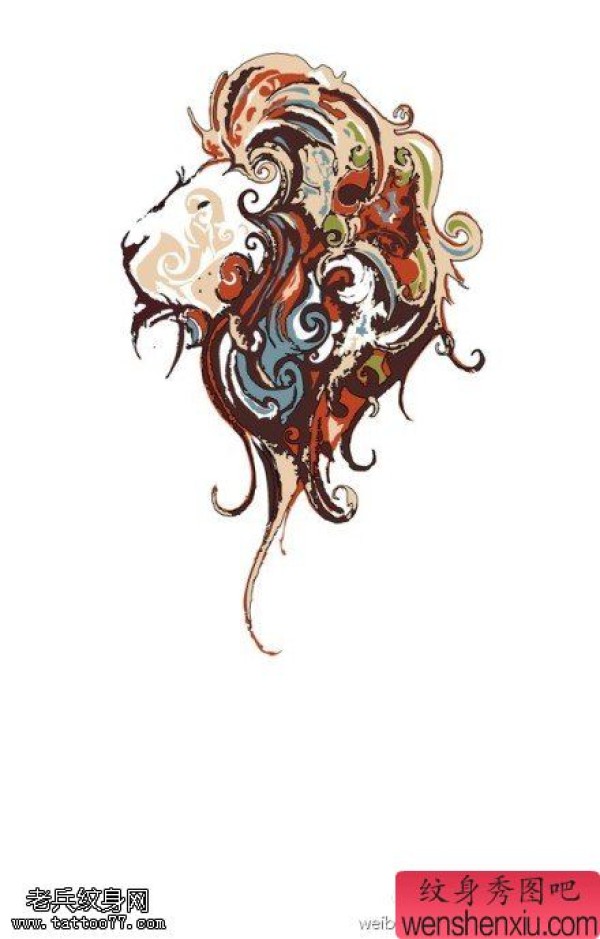 彩色狮子文身手稿作品由文身馆分享